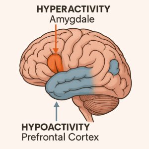 Hyperactivation du système limbique (amygdale), générant peur et panique.