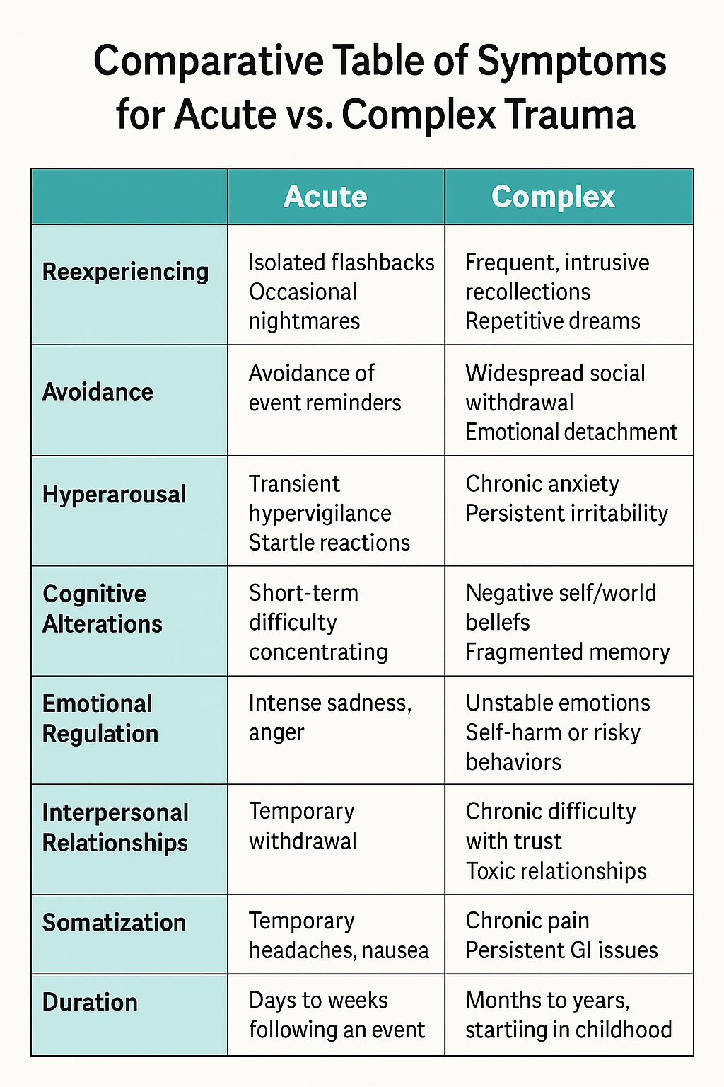 Traumatisme complexe : exposition prolongée ou répétée (violence domestique, guerre).
